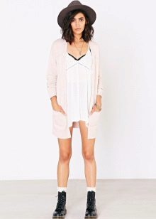 A cardigan is combined with almost any summer clothes, but there are several most successful options: