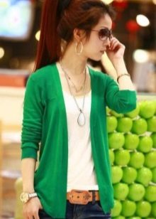 In summer, you should give preference to an elongated cardigan or model with an asymmetric hem. If you want to emphasize the waist, use a thin strap. He can also create beautiful and rich draperies. Do not forget about a variety of accessories - pendants, necklaces, rings, bracelets.
