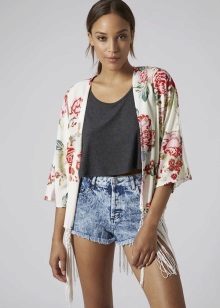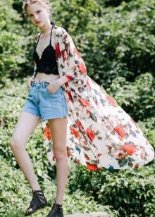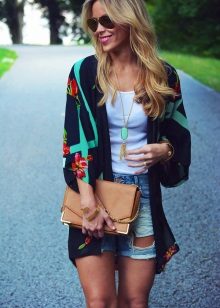 Cardigans with various floral prints are popular, which can be small, large, combined with geometric patterns. It will perfectly complement a summer skirt, denim shorts or torn jeans with a tight top.