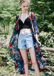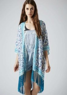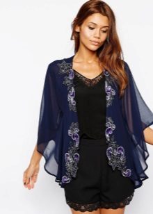 Recently, chiffon cardigans are very popular. Especially relevant models resembling a kimono. As a rule, they have wide sleeves that help create the effect of lightness and airiness during movement. Often they are complemented by embroidery, pompoms, various embroidery or just a beautiful print.
