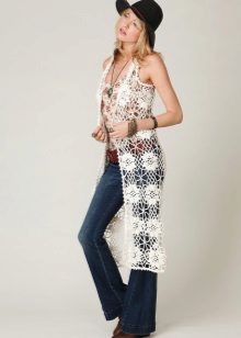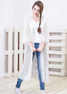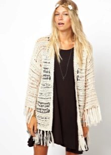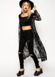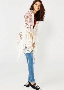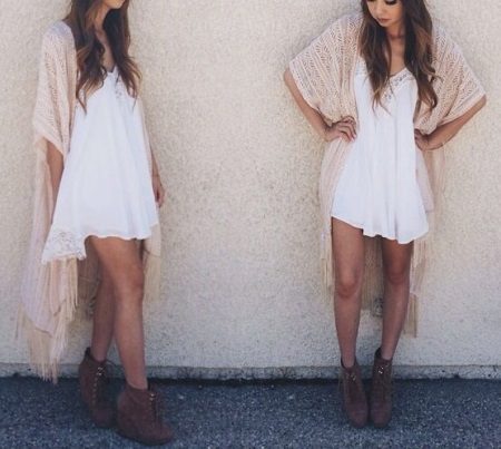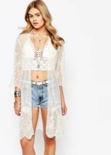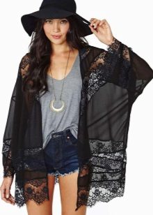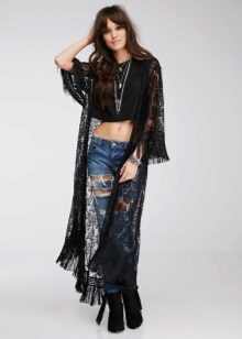 Also not so long ago, guipure kimono cardigans came into fashion. They are light, airy and absolutely universal. It is best to wear them with regular jeans and simple t-shirts to feel how easy they can turn even the most boring look into the image of a bohemian diva. In the evening, complement it with beautiful decorations and accessories, and you can safely go to the party.