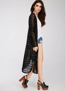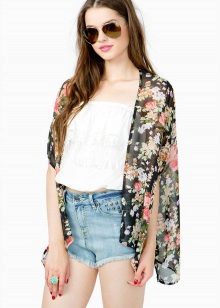A cardigan made of translucent light chiffon can be worn even in the hottest weather. For every day it can be combined with shorts, jeans, trousers and simple T-shirts.