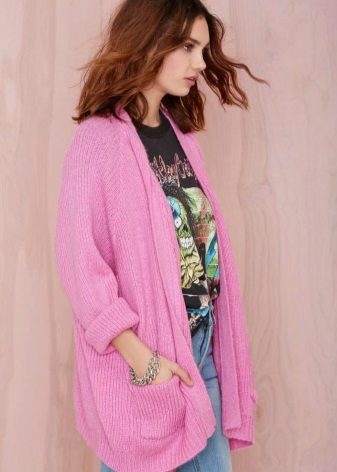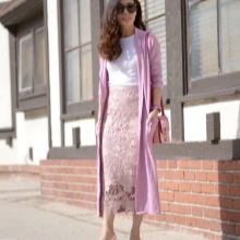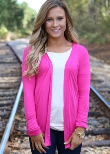 A cardigan of a rich, saturated pink color will help create a bright, extravagant look, and pale pink shades are perfect for creating a delicate and romantic look.