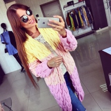 Pink cardigans and all its shades are in fashion. Light, pastel shades are very suitable for fair-skinned blonde girls.