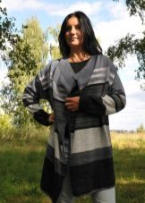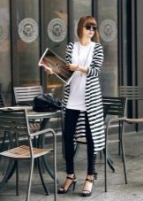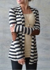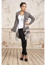 Are in great demand gray striped cardigans. The horizontal strip is suitable only for slim beauties, but girls with curvaceous shapes can fill up their wardrobe with a gray cardigan decorated with black diagonal stripes.The wide strip looks more spectacular, although miniature girls should prefer narrow-striped models.