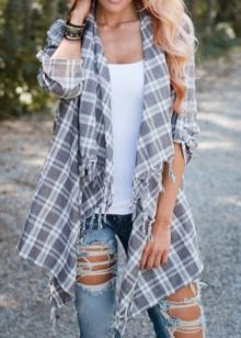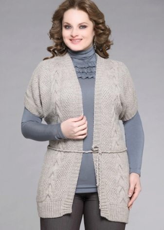 Are in great demand cardigans with an asymmetric hem and short sleeves. They are in perfect harmony with a blouse or a long sleeve shirt, comfortable black or blue jeans and chic boots without heels.