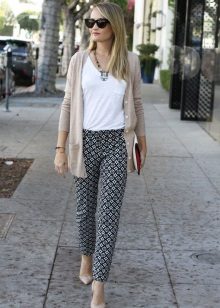 To create a business image, you can wear this element of the wardrobe with a classic-cut blouse in a light shade. The combination of a gray cardigan with a pencil skirt looks stylish. It is also worth remembering about classic straight trousers. For convenience, when choosing shoes, you can opt for pumps.