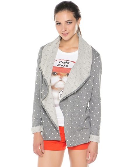 Look bright and stylish polka dot cardigans, which is always in fashion. A gray cardigan with black polka dots is a classic, so such a tandem is perfect for a business look.
