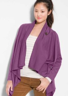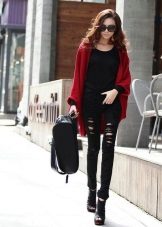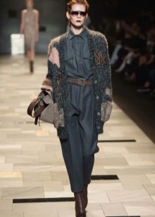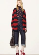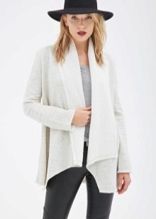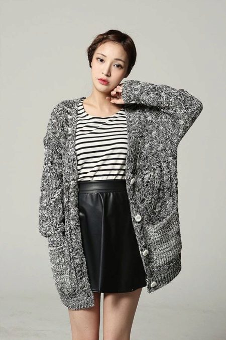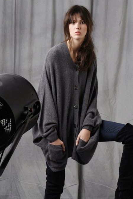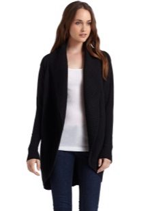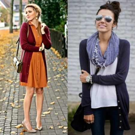 Today, “stretched” cardigans, which are made from thin knitwear, are in fashion. This top looks great in a tandem with skinny jeans. Short cardigans should be combined with wide-cut trousers or puffy skirts.