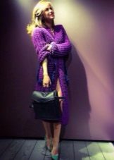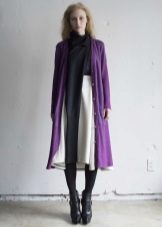 Many girls prefer to wear skirts with cardigans, and not just a straight cut. A great solution is the combination of a white sun skirt and a tight knit lilac cardigan.