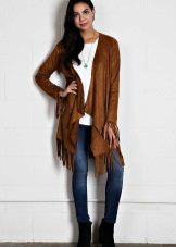 Suede cardigan is used as an outerwear, so it is in perfect harmony with many elements of the wardrobe.
