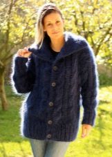 The main advantages of mohair are airiness and volume. It is characterized by durability, light weight, lends itself perfectly to coloring, and also perfectly retains heat. The disadvantage of fabric is that its fibers are pricked, so a cardigan should not be worn on a naked body.