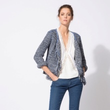 A tweed cardigan is often chosen for the fall season. It can be worn over shirts or t-shirts. When choosing the bottom, you can give preference to jeans, although in a tandem with short dresses, he looks luxurious and elegant.