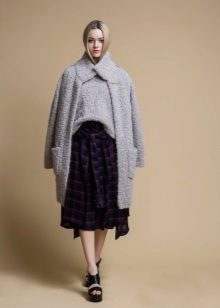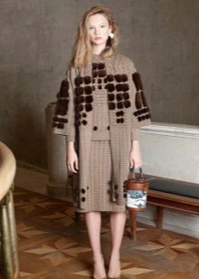 To create a cozy and soft thing, designers often combine several yarns. So, fur is well combined with knitwear. This model is characterized by volume, but easily touches the shoulders.
