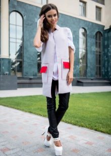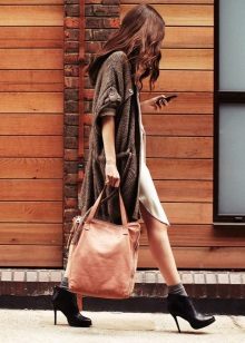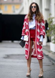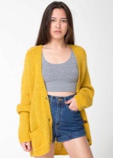 Today, the trend is a combination of short and long. To create a sexy and attractive look with an elongated cardigan, you should combine short shorts or a miniskirt.