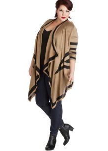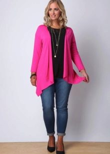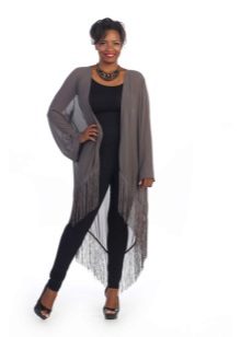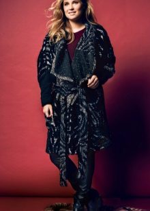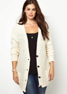 A cardigan with a length of up to the knee or mid-thigh, as well as with a straight bottom and a V-neck, is ideal for full girls. An asymmetrical hem with drapery looks interesting. Such a model will help to give a silhouette of harmony.