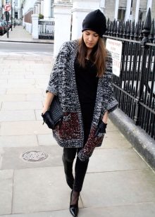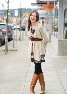 Special attention should be paid to the choice of accessories, because they will help to make a cardigan the main focus of a stylish bow. A leather belt with a large yarn or a narrow color strap looks very nice. Moreover, it should not be tightened at the waist, but simply left to hang freely in the hips.