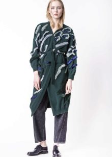 Models of elongated cardigans from famous fashion designers are real works of art. So, Ashish uses the patchwork technique, Emanuel Ungaro decorates the models with jewelry, and Alena Akhmadulina uses original applications. T