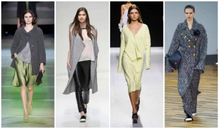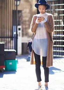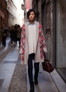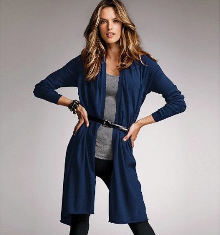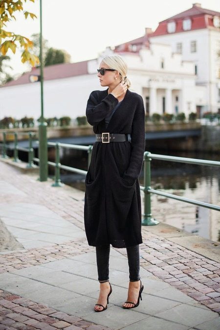 An extended cardigan is in trend today, so fashion designers offer stylish and unusual combinations with this wardrobe element.