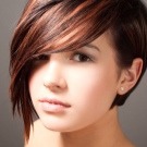 - Short bob with asymmetric bangs to the side. It is a fairly aggressive image that is not for everyone.