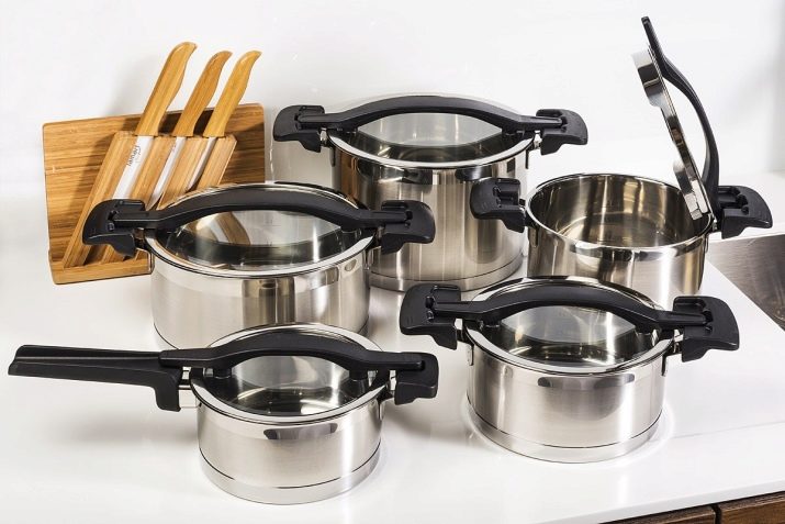 Ideal in sanitary and practical terms, steel includes a maximum of 10% nickel and 18% chromium. And the chemical composition is not all. A multilayer heat distributor is necessarily built into the bottom of a solid product. This element is made of different metals, thereby accelerating heating and cooking. Selected designs from leading companies look beautiful and completely safe. The difficulty is only in very high prices for goods from large manufacturers.