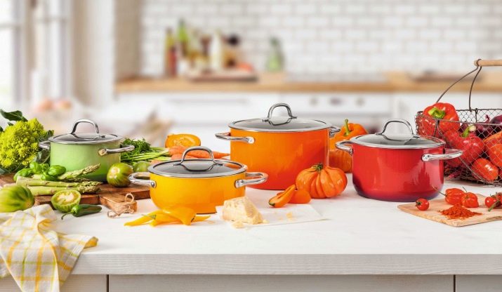 - A big plus of the models is a stylish design that will fit into any kitchen and turn the cooking process into a real pleasure. The metallic outflow of steel pots and the bright colors of ceramic ones will cheer you up and add a twist to your interior.