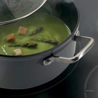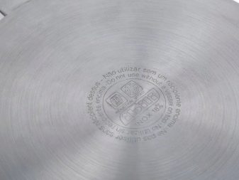 The bottom, consisting of several layers of metal, prevents deformation and minimizes the time for heating the dishes. The product retains heat longer and is evenly distributed over the surface. For use on an induction cooker, the manufacturer must indicate that a ferromagnetic alloy, the basis of which is copper, is present in an additional layer of the bottom.