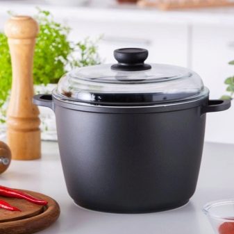 It is the low price of this type of dishes that makes it affordable. But not all pots made of this metal are cheap. Those made of cast aluminum belong to expensive and very high-quality cookware. Due to the lightness of the material, it is possible to produce pans of large sizes - 40, 50 and even 100 liters in volume. Such containers are popular in catering establishments.