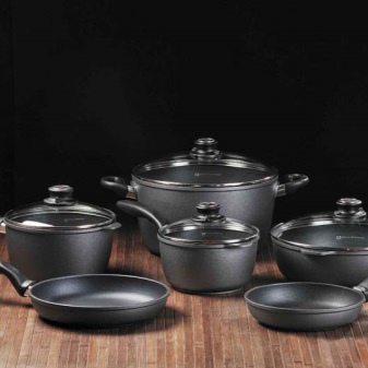 Crockery made in this way is like cast iron. It has a thick bottom and walls, this allows you to warm the contents of the pan evenly and keep it warm for a long time. The production technology consists in pouring molten aluminum into prepared forms. It is important to know that with this method it is impossible to manufacture a product of complex configuration. Cast pots are only of simple shapes, otherwise they simply cannot be removed from the workpiece.