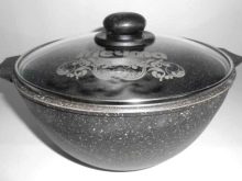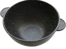 For cooking, a cauldron is used. A cauldron is a cast-iron boiler having a rounded shape with a round bottom, which has rather strong massive walls.