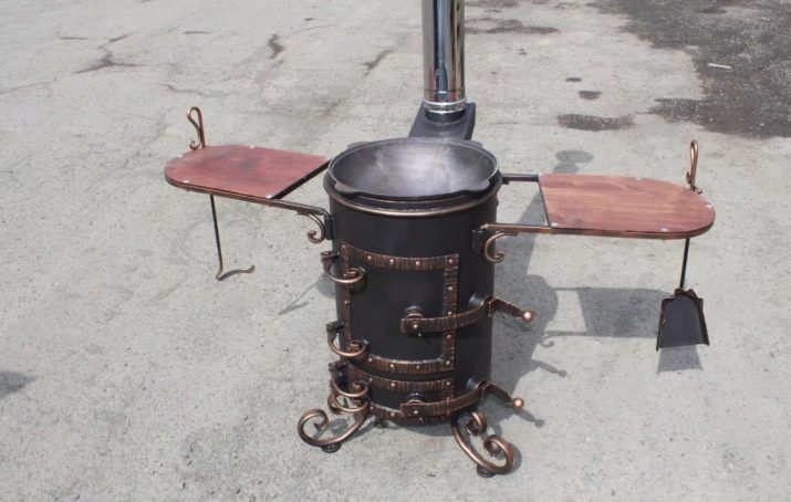 The furnace for a cauldron made by this type is stationary and cannot be moved to another place. In some cases, its chimney is equipped as part of the main blast chimney.At the same time, the stove can serve not only as a household appliance, but also as an interior decoration. At the preparation stage, design manipulations are performed. Drawings are prepared on which the dimensions of all the main parts of the structure are marked: the upper plane of the stove, furnace, blower, chimney holes.