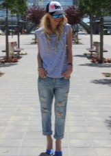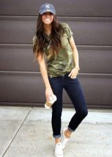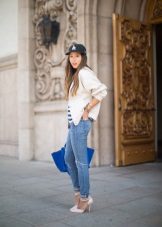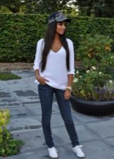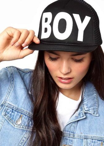 - sporty chic. Cap in the "rapper" style, combine with jogger pants, sneakers, boots or sneakers;