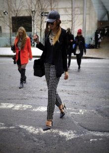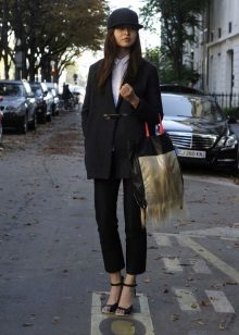 In big cities, the military style is relevant: Choose a “khaki” jacket, dark-colored dress pants and complement them with a “German” or “slide” cap. A denim black headdress with jewelry is suitable for lovers of bright and catchy things, you can combine with any everyday clothes, but in no case with office clothes.