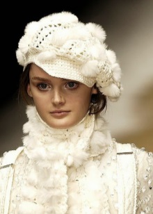 A winter cap can be worn with a voluminous coat, a short fur coat or a stylish down jacket. Do not choose for combination with a cap overly feminine fitted coats or fur coats. Fur caps should not be worn with fur coats.