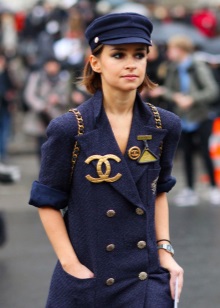 - To create an image in a marine or sailor style, it is enough to wear a cap made of natural material, stylized as a sailor cap.