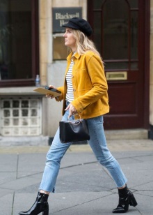 Jockeys go well with stylish parkas or sporty-chic raincoats. It is advisable to choose shoes with a low heel or platform.