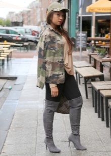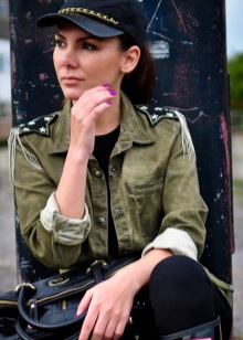 Girls can create an ensemble of baseball caps and dresses, but for this, at least one sports piece is required in the image - the corresponding jacket or sneakers. Military cap models will look great in combination with camouflage clothing, as well as with casual casual items: jeans, t-shirts and jackets.