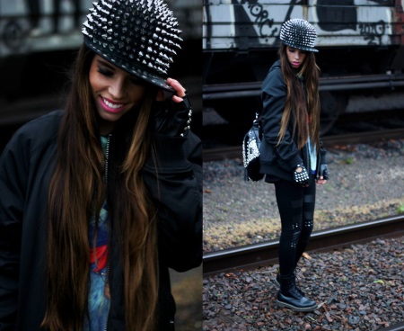 - Rocker style leather caps with rivets, spikes, skulls or goggles will help to realize your style.