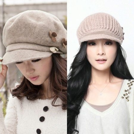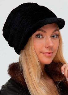 The cap and cap were revived again and became almost the most popular options for winter caps. Such models are recognizable due to the wide visor, a small circle with well-defined lines and tulles.