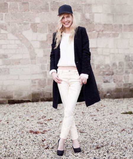 Another version of the classics, but in this case not so strict and categorical. This option is more universal, because on its basis not only strict images and office bows can be created, but also cute, delicate, romantic combinations. Such a cap can be supplemented with knitted gloves or mittens, a small backpack instead of a bag, and a shortened coat.
