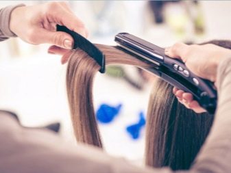 - Then, when the hair dries after the mask, each strand is worked out with a hot ceramic iron, heated to 230 degrees. During heating, keratin coagulates in the structure of each hair, then the scales close. Thus, an upper protective coating is formed. But if the master applied less keratin than was required, there is a risk of "burning" the curls, and not restore them. And vice versa, if the funds are applied in excess, then after the procedure, the curls will quickly get dirty and become greasy.