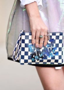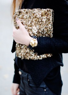 The clutch does not have a universal model. Choose a bag for the place and the image as a whole. Solid models - leave for daily use. But bright handbags, with a motley and rich finish, feel free to take along for the holidays.