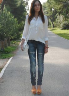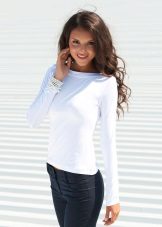 A white sweatshirt is often used as a background, with a stylish t-shirt or delicate scarf made of thin fabric decorated with a print in a small flower can become an accent. To emphasize the elegance of a snow-white jacket, it is worth choosing an exquisite decoration on a long chain.