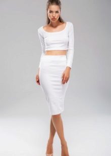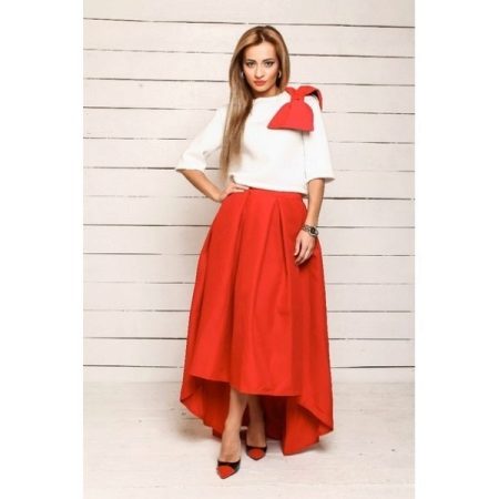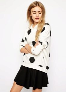 Sweatshirts in white look elegant in tandem with red skirts. It is the white top that dims the brightness and aggression of the red bottom. Such an ensemble is suitable for courageous individuals who strive to always be in the spotlight.