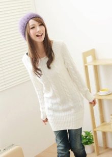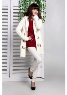 Knitted white jacket can be represented in different styles. For the cold season, preference should be given to long options in order to feel as comfortable as possible even in bad weather.