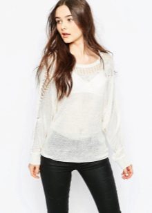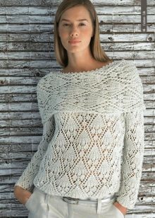 Openwork knitwear, which outwardly cannot be distinguished from lace, looks feminine, therefore it is often used when sewing sweaters, especially white ones. In such a jacket you can embody a sophisticated, delicate and romantic bow.