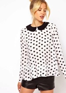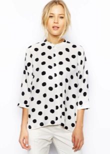 White blouse with black polka dots belongs to all your favorite classics. Round collar models are ideal for business, casual or romantic styles. Girls prefer bright peas on a white background. Such a print will help to show your personality.