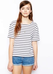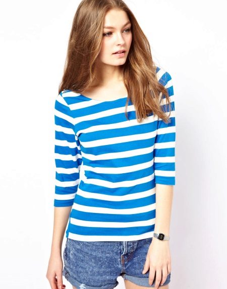 The snow-white blouse with a blue strip fits perfectly into the marine theme. It can be worn in tandem with blue trousers, jeans or skirts.