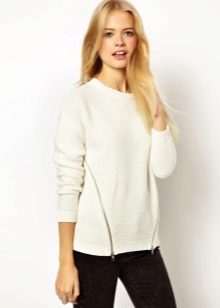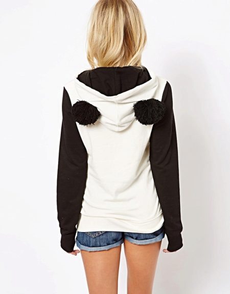 White sweatshirts with black sleeves look spectacular and fashionable. This combination looks bright and beautiful. Sweatshirts, jumpers or sweatshirts are presented in such an unusual combination. If you need to hide wide hips or a double chin, then you should pay attention to a jacket with a collar.