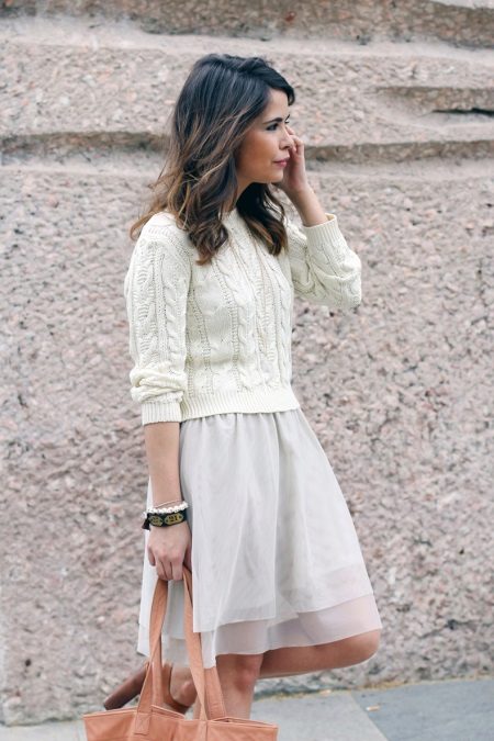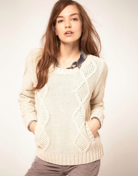 Knitted patterns can be worn with jeans to create a casual look. To embody a beautiful business image, a white sweater can be combined with strict skirts or dresses. White color is ideal for office style.